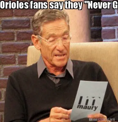 Make your own "Funny Orioles fans say they "Never Give Up" The KC Royals determined that was a LIE!" meme with MemeCreator's free online meme generator. Add text, stickers, and drawings — then download or share. No watermark, no sign-up required.