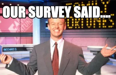 Make your own "Funny Our survey said…." meme with MemeCreator's free online meme generator. Add text, stickers, and drawings — then download or share. No watermark, no sign-up required.