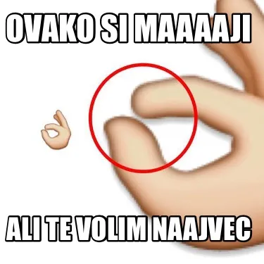 Make your own "OVAKO SI MAAAAJI ALI TE VOLIM NAAJVEC" meme with MemeCreator's free online meme generator. Add text, stickers, and drawings — then download or share. No watermark, no sign-up required.