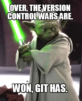 Make your own "Over, the version control wars are. Won, git has." meme with MemeCreator's free online meme generator. Add text, stickers, and drawings — then download or share. No watermark, no sign-up required.