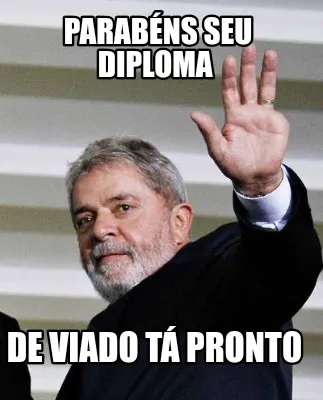 Make your own "Parabéns seu diploma De viado tá pronto" meme with MemeCreator's free online meme generator. Add text, stickers, and drawings — then download or share. No watermark, no sign-up required.