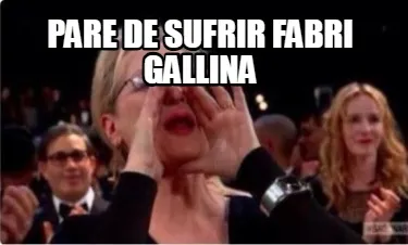 Make your own "PARE DE SUFRIR FABRI GALLINA" meme with MemeCreator's free online meme generator. Add text, stickers, and drawings — then download or share. No watermark, no sign-up required.