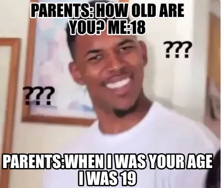 Parents How Old Are You Me18 Parentswhen I Was Your Age I Was Meme Template