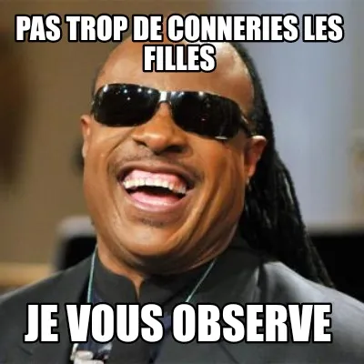 Make your own "Pas trop de conneries les filles Je vous observe" meme with MemeCreator's free online meme generator. Add text, stickers, and drawings — then download or share. No watermark, no sign-up required.