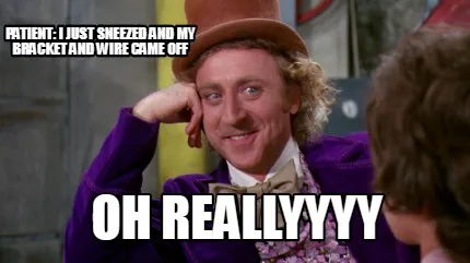 Patient: I just sneezed and my bracket and wire came off Oh reallyyyy Meme Template