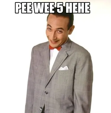 Make your own "Pee Wee 5 hehe" meme with MemeCreator's free online meme generator. Add text, stickers, and drawings — then download or share. No watermark, no sign-up required.
