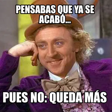 Make your own "Pensabas que ya se acabó... Pues no: queda más" meme with MemeCreator's free online meme generator. Add text, stickers, and drawings — then download or share. No watermark, no sign-up required.