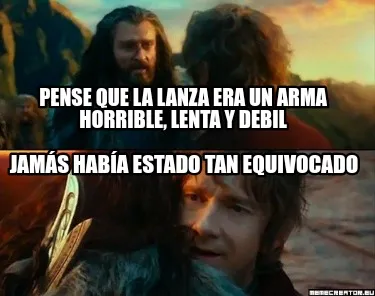 Pense que la lanza era un arma horrible, lenta y debil Jamás había estado tan Meme Template