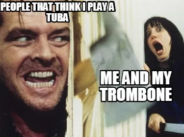 People that think I play a tuba me and my trombone Meme Template