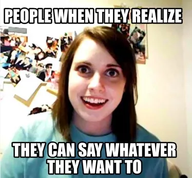 Create Funny People when they realize they can say whatever they want to Meme