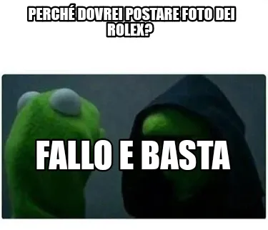 Make your own "Perché dovrei postare foto dei rolex? Fallo e basta" meme with MemeCreator's free online meme generator. Add text, stickers, and drawings — then download or share. No watermark, no sign-up required.