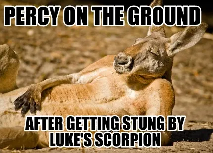 Create Percy on the ground after getting stung by Luke's scorpion Meme