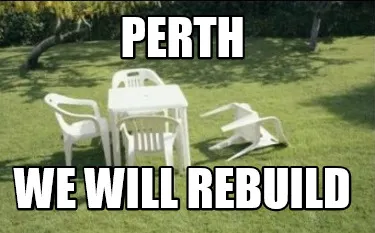 Make your own "Perth We will rebuild" meme with MemeCreator's free online meme generator. Add text, stickers, and drawings — then download or share. No watermark, no sign-up required.