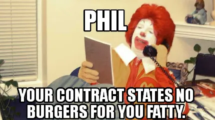 Funny Phil your contract states no burgers for you fatty. Meme Template