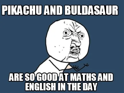 Create Funny Pikachu and buldasaur are so good at Maths and English in the day Meme