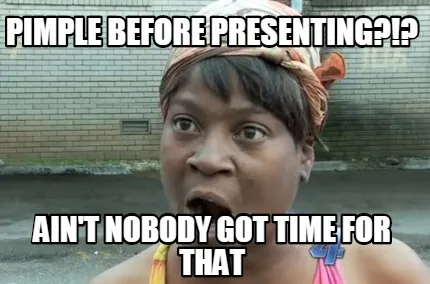 Create Funny Pimple before presenting?!? Ain't nobody got time for that Meme