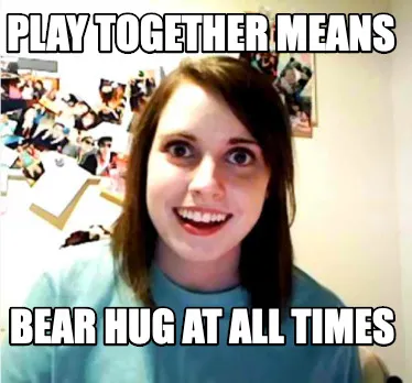 Create Play together means Bear hug at all times Meme