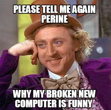Create Please tell me again Perine Why my broken new computer is funny Meme
