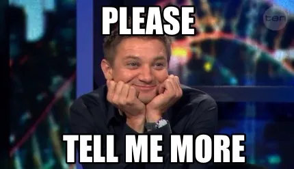 Make your own "Funny Please tell me more" meme with MemeCreator's free online meme generator. Add text, stickers, and drawings — then download or share. No watermark, no sign-up required.