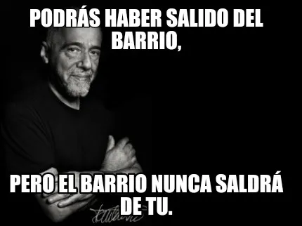 Make your own "Podrás haber salido del barrio, Pero el barrio nunca saldrá de tu." meme with MemeCreator's free online meme generator. Add text, stickers, and drawings — then download or share. No watermark, no sign-up required.