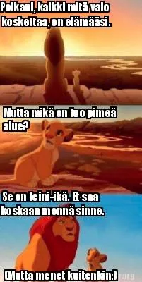 Make your own "Funny Poikani, kaikki mitä valo koskettaa, on elämääsi. Mutta mikä on tuo pimeä" meme with MemeCreator's free online meme generator. Add text, stickers, and drawings — then download or share. No watermark, no sign-up required.