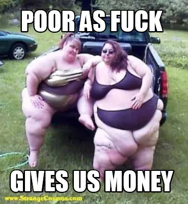 Make your own "Funny poor as fuck gives us money" meme with MemeCreator's free online meme generator. Add text, stickers, and drawings — then download or share. No watermark, no sign-up required.