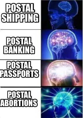 Funny POSTAL SHIPPING POSTAL PASSPORTS POSTAL BANKING POSTAL ABORTIONS Meme Template