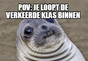 Make your own "Funny Pov: Je loopt de verkeerde klas binnen" meme with MemeCreator's free online meme generator. Add text, stickers, and drawings — then download or share. No watermark, no sign-up required.