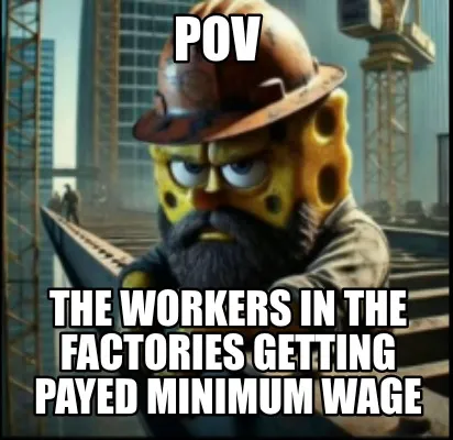 Create Funny POV The workers in the factories getting payed minimum wage Meme