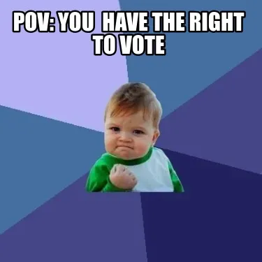 Make your own "Funny Pov: you have the right to vote" meme with MemeCreator's free online meme generator. Add text, stickers, and drawings — then download or share. No watermark, no sign-up required.