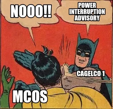 Funny Power interruption advisory Nooo!! Cagelco 1 MCos Meme Template