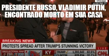 Make your own "Presidente russo, Vladimir Putin, encontrado morto em sua casa" meme with MemeCreator's free online meme generator. Add text, stickers, and drawings — then download or share. No watermark, no sign-up required.