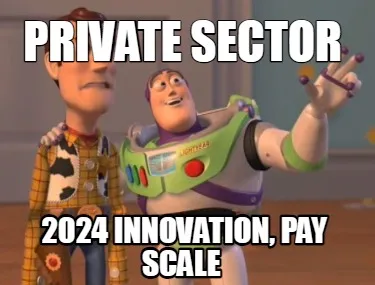 Create Funny private sector 2024 innovation, pay scale Meme