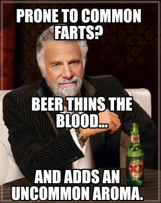 Create Funny Prone to Common farts? Beer thins the blood... And adds an uncommon aroma. Meme