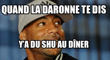 Make your own "Quand La Daronne Te Dis Ya Du Shu Au Dner" meme with MemeCreator's free online meme generator. Add text, stickers, and drawings — then download or share. No watermark, no sign-up required.