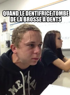 Make your own "Funny quand le dentifrice tombe de la brosse à dents" meme with MemeCreator's free online meme generator. Add text, stickers, and drawings — then download or share. No watermark, no sign-up required.