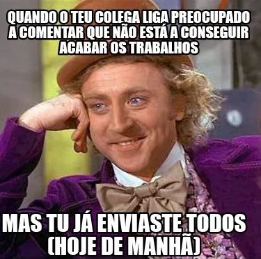 Make your own "Funny Quando o teu colega liga preocupado a comentar que não está a conseguir acabar" meme with MemeCreator's free online meme generator. Add text, stickers, and drawings — then download or share. No watermark, no sign-up required.
