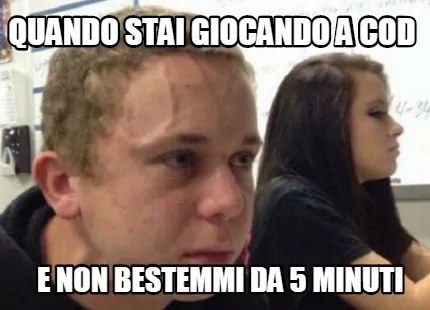 Make your own "Funny quando stai giocando a cod e non bestemmi da 5 minuti" meme with MemeCreator's free online meme generator. Add text, stickers, and drawings — then download or share. No watermark, no sign-up required.