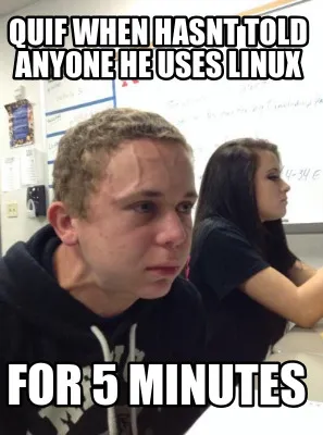 Create Quif when hasnt told anyone he uses linux for 5 minutes Meme