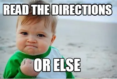 Make your own "Read the directions or else" meme with MemeCreator's free online meme generator. Add text, stickers, and drawings — then download or share. No watermark, no sign-up required.