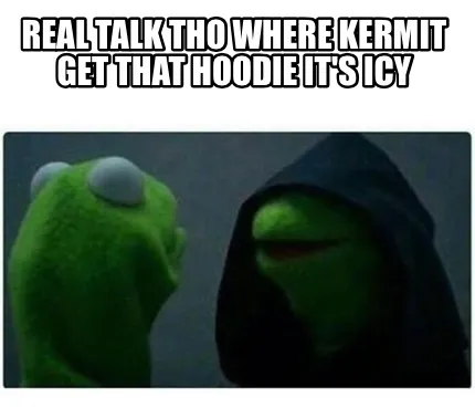 Create Real talk tho where Kermit get that hoodie it's icy Meme