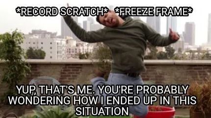 Record Scratch Freeze Frame Yup Thats Me. Youre Probably Wondering How I Ended U Meme Template