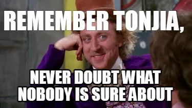 Remember Tonjia, never doubt what nobody is sure about Meme Template