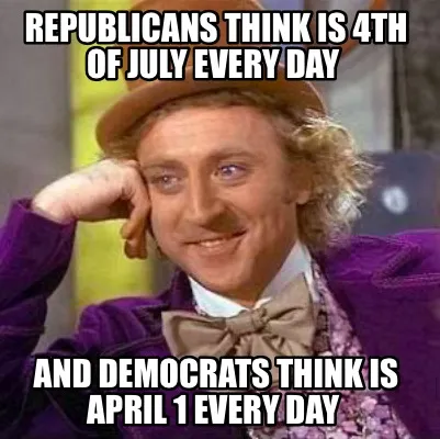 Create Republicans think is 4th of July every day And democrats think is April 1 every Meme