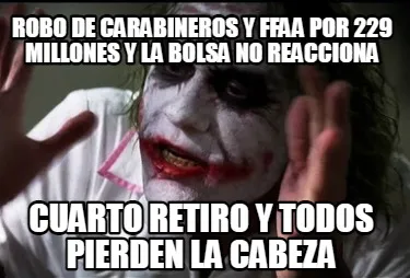 Create Funny Robo de carabineros y FFAA por 229 millones y la bolsa no reacciona cuarto retir Meme