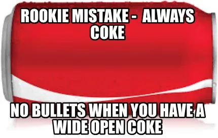 Create Rookie mistake - always Coke No bullets when you have a wide open coke Meme