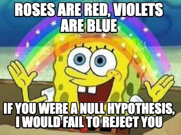 Roses are red, Violets are blue if you were a null hypothesis, I would fail to r Meme Template