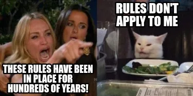Rules don't apply to me These rules have been in place for hundreds of years! Meme Template