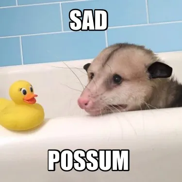 Make your own "Sad Possum" meme with MemeCreator's free online meme generator. Add text, stickers, and drawings — then download or share. No watermark, no sign-up required.