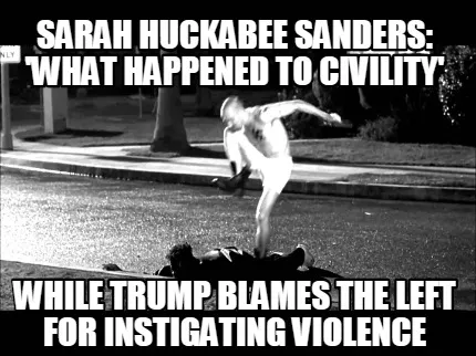 Create Sarah huckabee sanders: 'what happened to civility' while Trump blames the left Meme